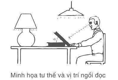 Tư Thế Đọc: Chúng ta thường không quan tâm nhiều đến việc tìm cho mình 1 vị trí và tư thế đọc tốt nhất. Do đó , ta chọn tư thế nằm đọc thay vì ngồi trên chiếc ghế tựa ngay ngắn. Cách đọc đó tuy thoải mái, dễ chịu nhưng lại khiến ta không thể đọc nhanh và lâu dài được. Góc đọc, khoảng cách giữa mắt và tài liệu, độ linh hoạt của đôi tay không hợp lý chính là thủ phạm khiến bạn mau chóng mệt mỏi, thiếu tập trung và thậm chí buồn ngủ.